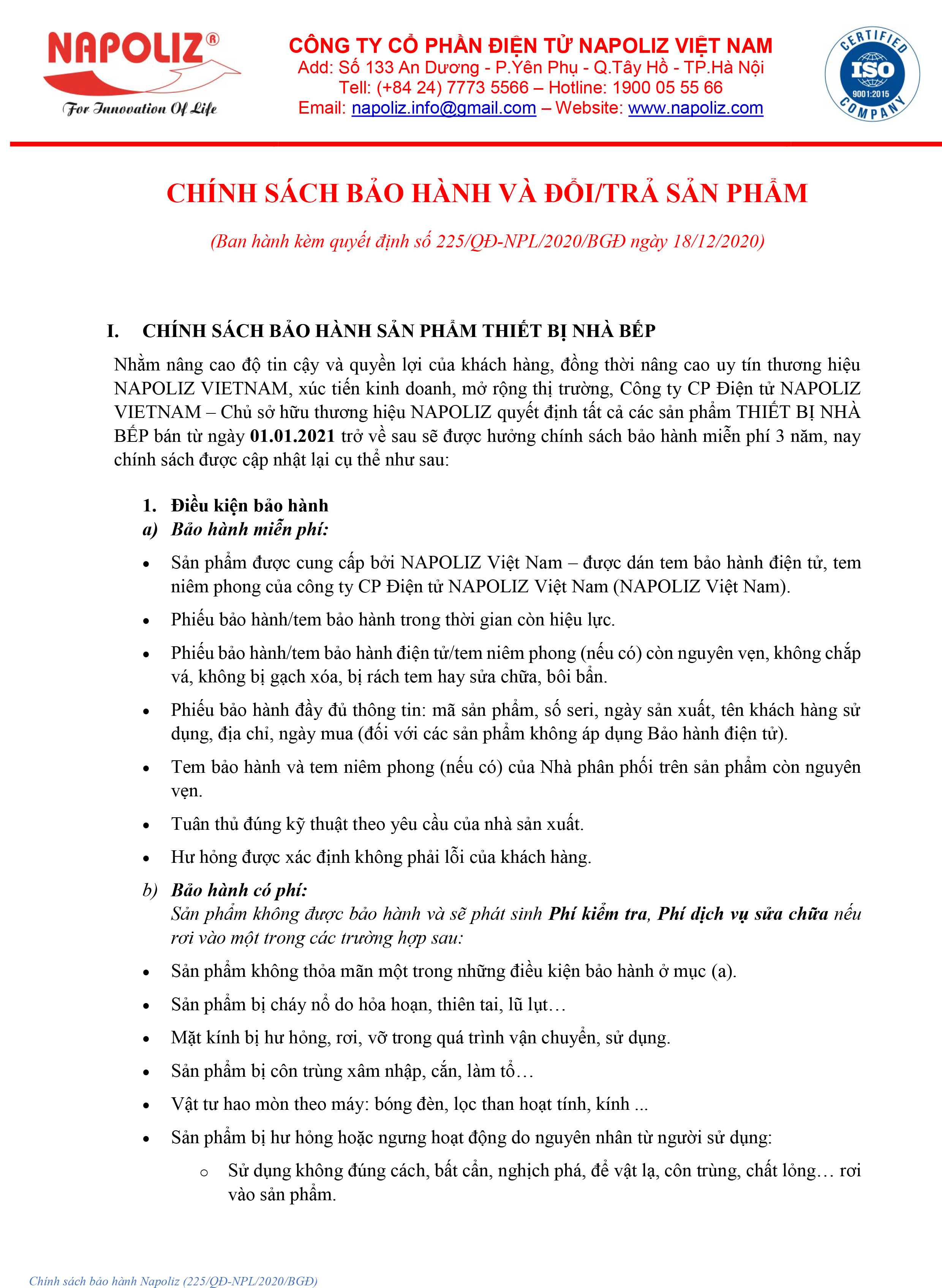 CÔNG TY CỔ PHẦN ĐIỆN TỬ NAPOLIZ VIỆT NAM